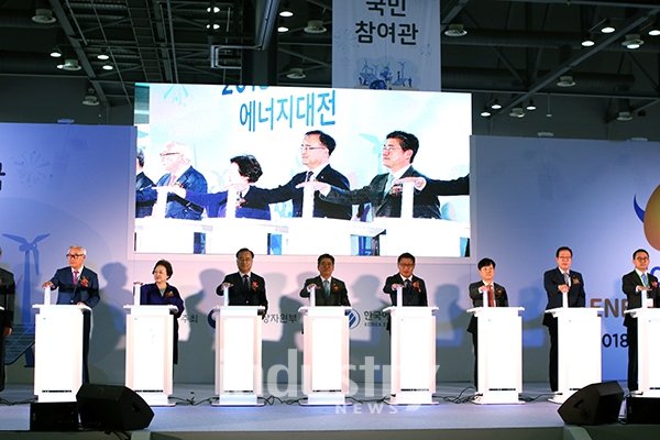 ³»¿ë Á¤½ÂÀÏ(¿À¸¥ÂÊ 5¹øÂ°) »ê¾÷Åë»óÀÚ¿øºÎ Â÷°üÀÌ 2ÀÏ ÀÏ»ê Ųµ¦½º¿¡¼­ ¿­¸° ¡®2018 ´ëÇѹα¹ ¿¡³ÊÁö´ëÀü¡¯ °³¸·½Ä¿¡¼­ ±â³äÃÔ¿µÀ» Çϰí ÀÖ´Ù. [»çÁø=Çѱ¹¿¡³ÊÁö°ø´Ü]2~5ÀÏ ÀÏ»ê ŲŨ½º¡¦¿ª´ë ÃÖ´ë 303°³ ±â¾÷ Âü°¡, 2..